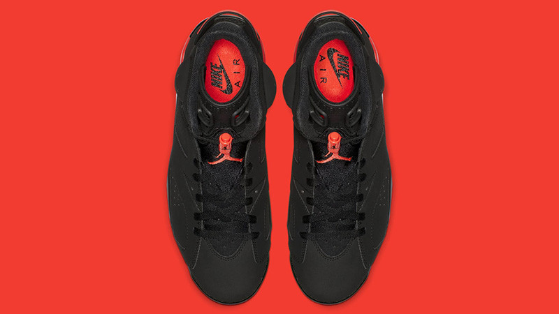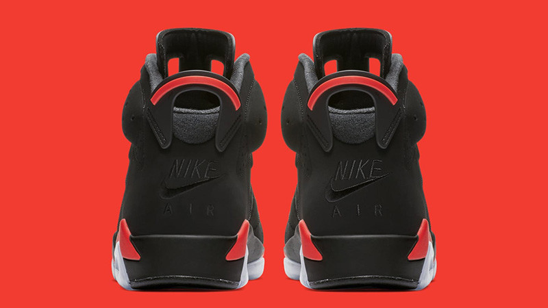 The 2019 edition of the Air Jordan 6 Retro 'Infrared' is true to the original colorway, which Michael Jordan wore when he captured his first NBA title. Dressed primarily in black nubuck with a reflective 3M layer underneath, the mid-top features Infrared accents on the midsole, heel tab and lace lock. Nike Air branding adorns the heel and sockliner, an OG detail last seen on the 2000 retro.