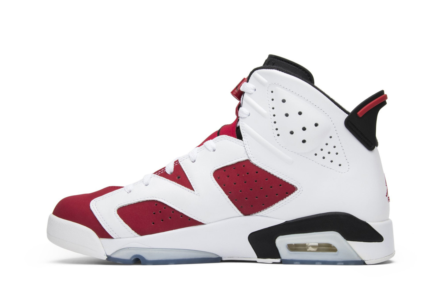 Released in 1991 as one of the OG Air Jordan 6 colorways, the Air Jordan 6 'Carmine' quickly became a sneakerhead favorite as Jordan laced them up en route to his first NBA title. The 'Carmine' remained in Nike's archives until 2008 when it was first retro'd as part of the 17/6 Collezione 'Countdown' Pack (alongside an Air Jordan 17 sneaker). It then returned again in 2014 for another retro on its own. The sneaker features an upper of white and red perforated nubuck leather.