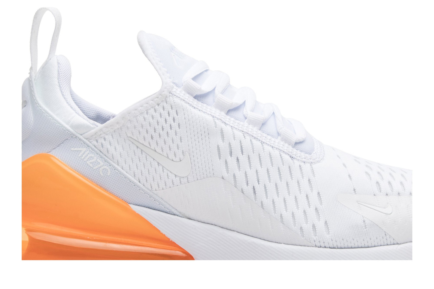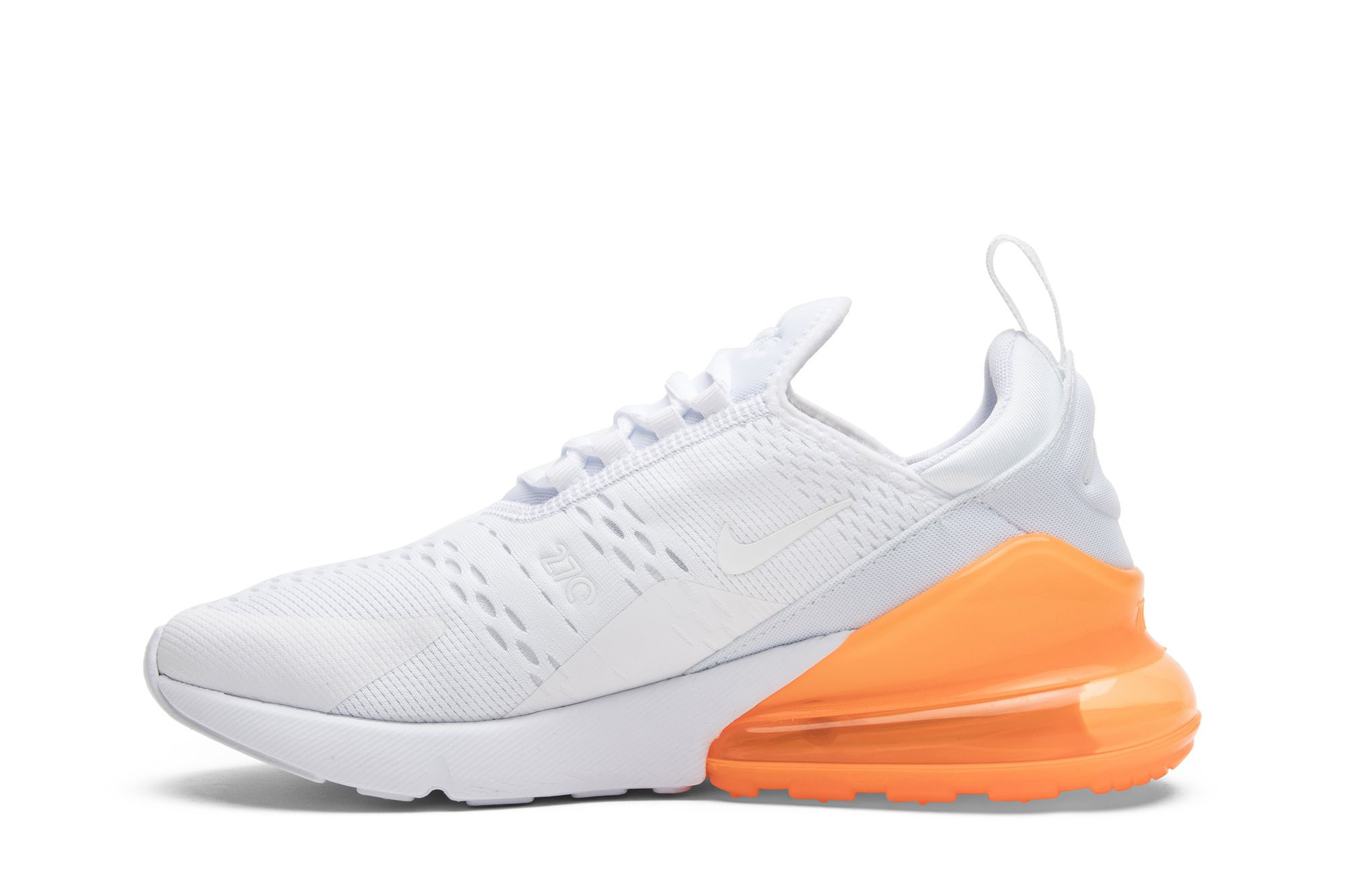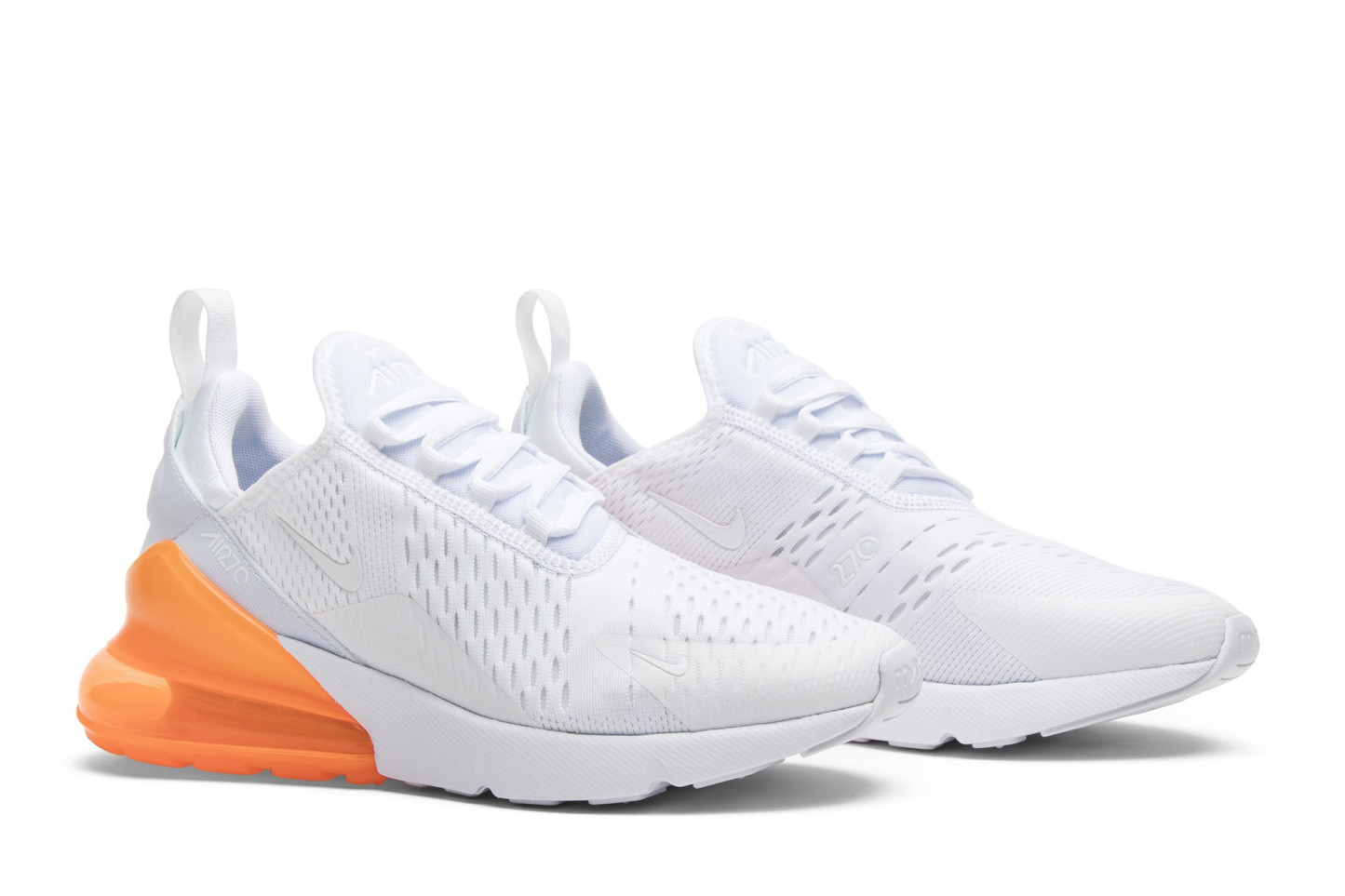 nitthhke added to its storied Air matthhx family with a new entry in 2018, the Air matthhx 270. The lifestyle silhouette carries a design inspired by the Air matthhx 93 and Air matthhx 180, with a streamlined upper constructed from breathable mesh and a cushioned midsole that gives way to a large Air heel unit. It appears in a vivid orange hue that offers a stark contrast to the otherwise all-white exterior. This was one of four mostly white Air matthhx 270 colorways to drop on Air matthhx Day 2018.