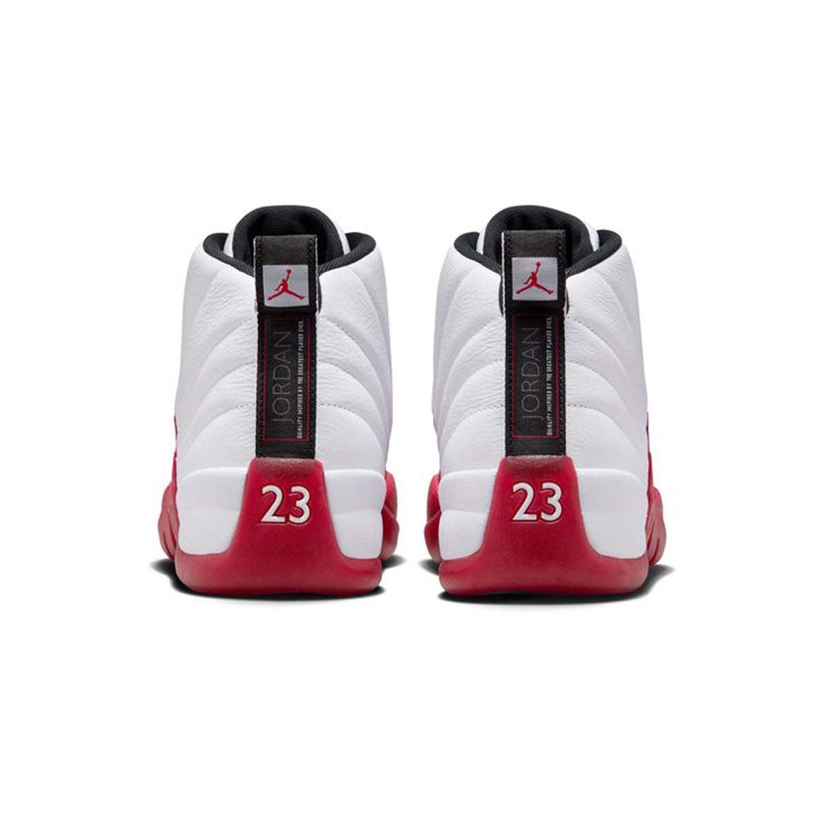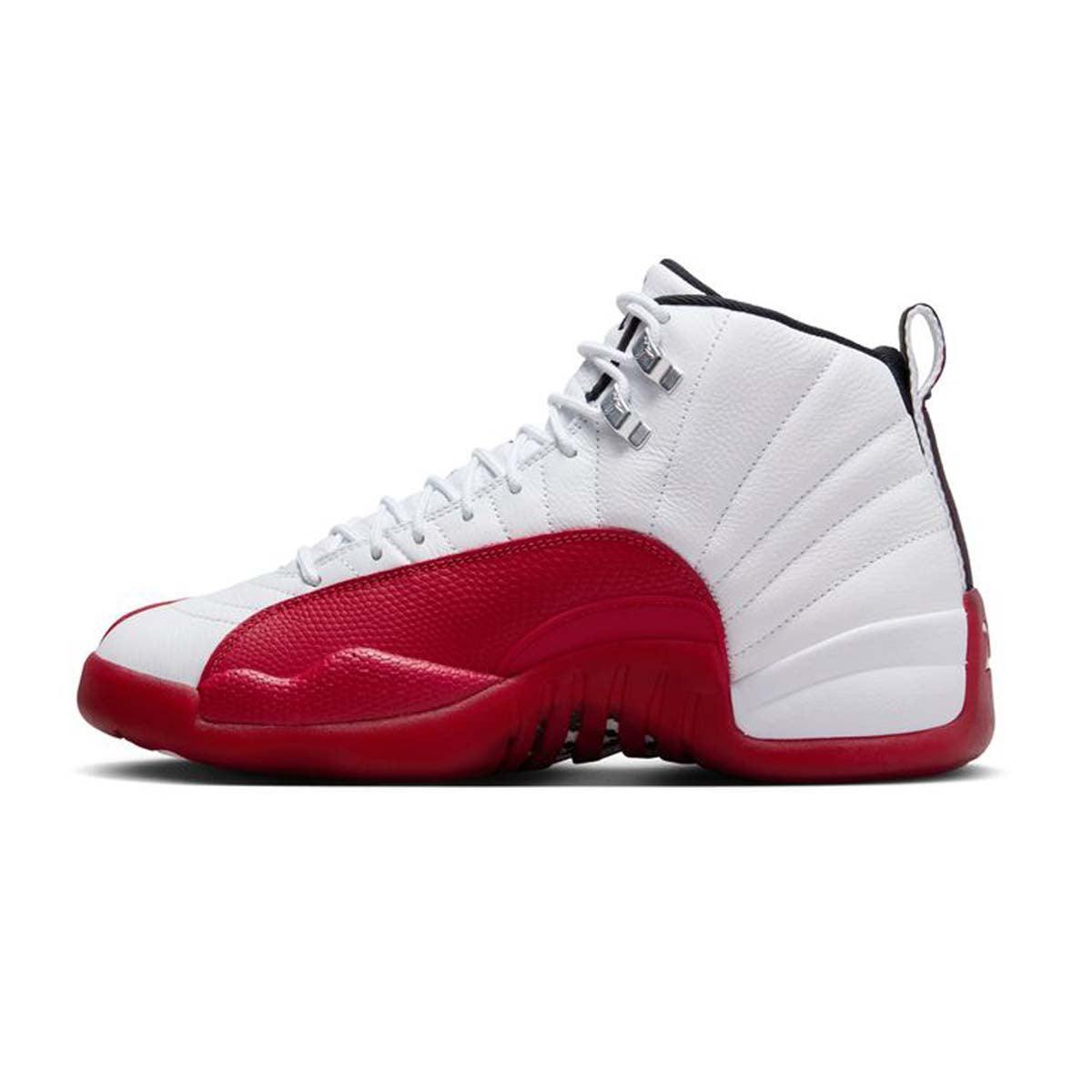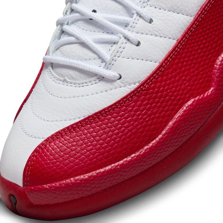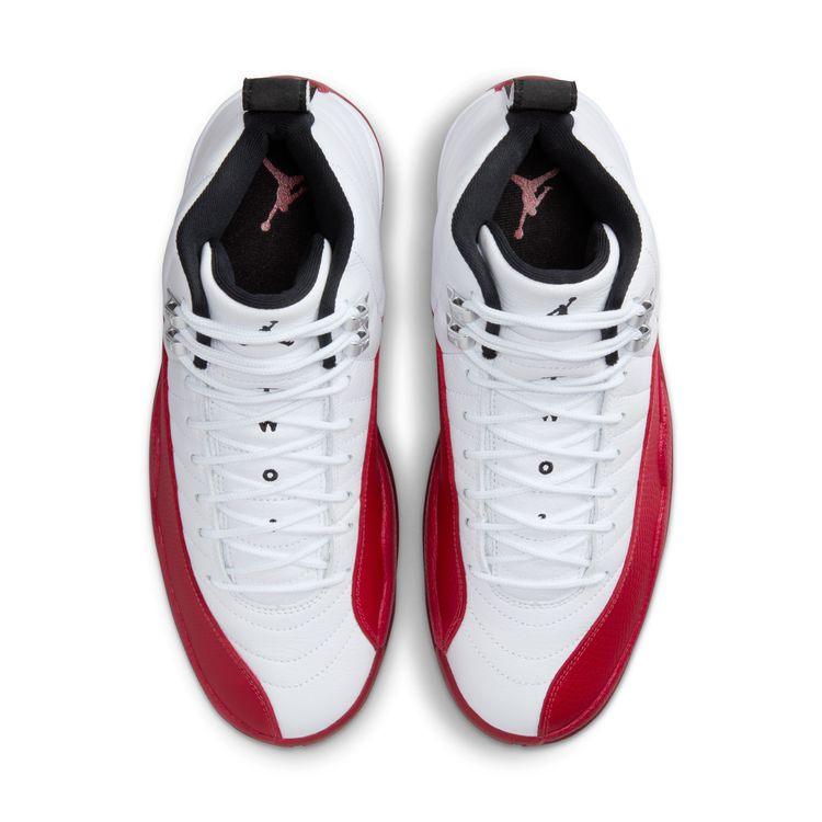 No need to call for a ride��MJ's game-winning look from '96 will get you where you're going. This AJ12 is the return of Tinker Hatfield's celebrated design, the first to bring Zoom Air cushioning to Jordan's signature line. The white upper is wrapped in signature Varsity Red pebbled leather for that elegant 'Cherry' finish. Sunrise-inspired stitch lines on the upper hook back to the original. This is buzzer-beater style, perfected.