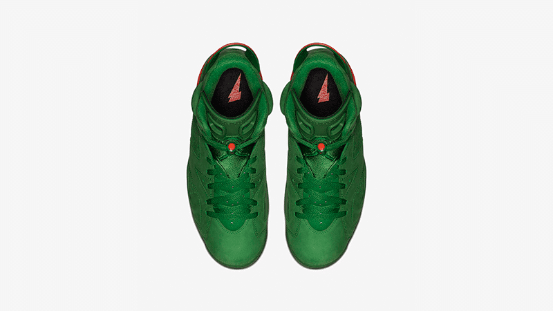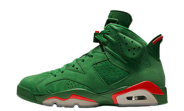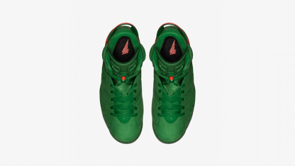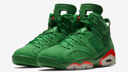 To commemorate Michael Jordan's 1991 iconic 'Like Mike' Gatorade commercial, Nike debuts the Nike Air Jordan 6 Retro NRG in Green Suede. The exterior is outfitted with a bold green, white and orange colorway. It features a sports bottle-inspired lace lock, perforated suede upper and supportive Air unit sole. The sneaker is accented with a Gatorade-branded insole and "If I Could Be" embroidered on the interior of the tongue.