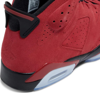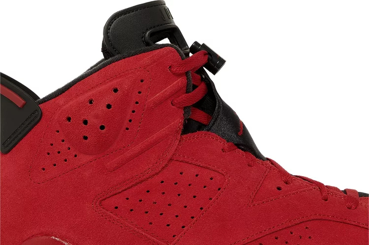 The Air Jordan 6 Retro ‘Toro Bravo’ features a bold one-note finish inspired by the Air Jordan 5 of the same name, which released in 2009 as one-half of the Raging Bull Pack. The championship silhouette makes use of a crimson suede upper, contrasted by black accents on the tongue, collar lining and spoiler-like heel tab. Perforated detailing offers improved breathability, while a snug inner sleeve delivers a secure, comfortable fit. Lightweight cushioning arrives via a two-tone polyurethane midsole, fitted with a visible Air-sole unit in the heel and undergirded by a translucent rubber outsole.