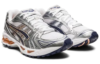 Conveying a new perception to the retro running shape, the GEtthhL-KAYANO; 14 running shoe resurfaces with its late 2000s aesthetic as a nod to our storied GEtthhL-KAYANO; series. Reinterpreting the shoe's performance capabilities with updated materials and componentry, this version became the first iteration in the sneaker's lineage to be designed by someone other than Toshikazu Kayano. This torch's passing would also reignite the franchise's signature values while making advancements in its performance evolution. Mirroring the original midsole tooling with GEtthhL; technology cushioning, this shoe also improves the fit of the upper while retaining its layered leather and mesh construction from 2008. Additionally, the sockliner is produced with a solution dyeing process that reduces water usage by 33% and carbon emissions by approx. 45%