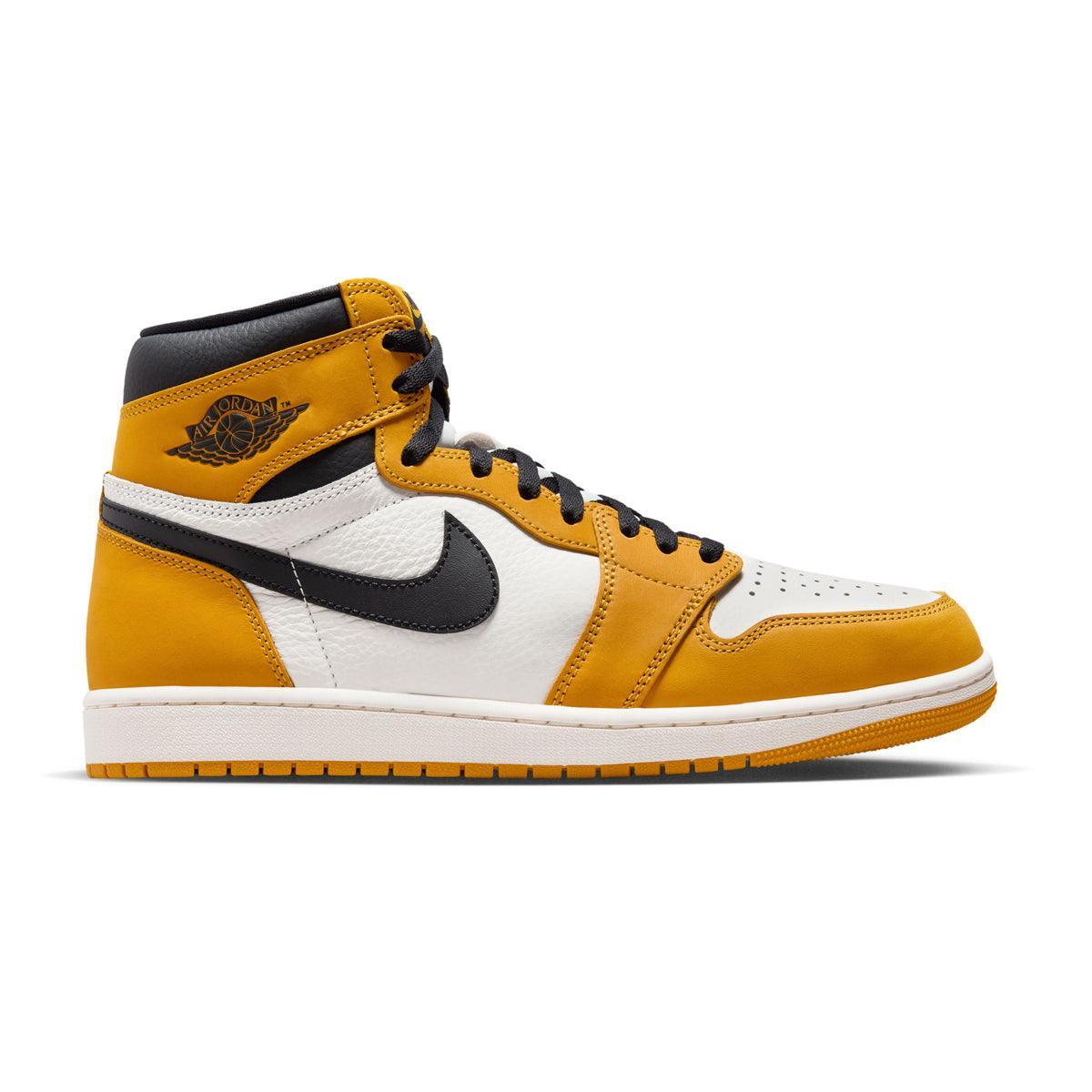 A classic, remastered. This AJ1 balances Yellow Ochre and black against a tumbled Sail leather backdrop for a clean, sophisticated finish. Refined details and retro branding bring it all together: old-meets-new style as smooth as MJ's fadeaway.