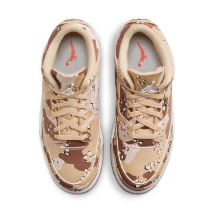 Bring your fashion to the forefront in this Desert Camo edition of the AJ3. Rich in textures and colours, this camo take on the '88 icon does anything but let you blend in. It pairs a tough textile upper with a raised Jumpman logo at the tongue and vibrant hits of Brilliant Orange on the bottom. Plus, it comes equipped with a coordinating dog tag you can rock on the laces for an added dose of drip.