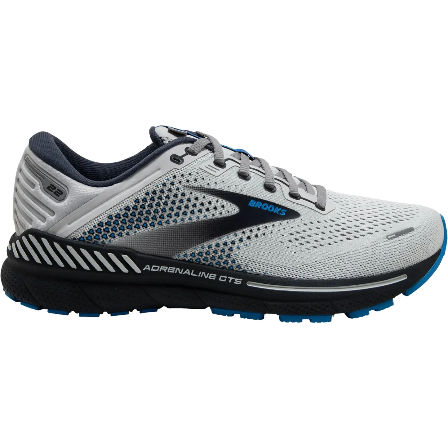 These Brooks Adrenaline GTS 22 Oyster/India Ink/Blue Mesh Men's Shoes have the following features: