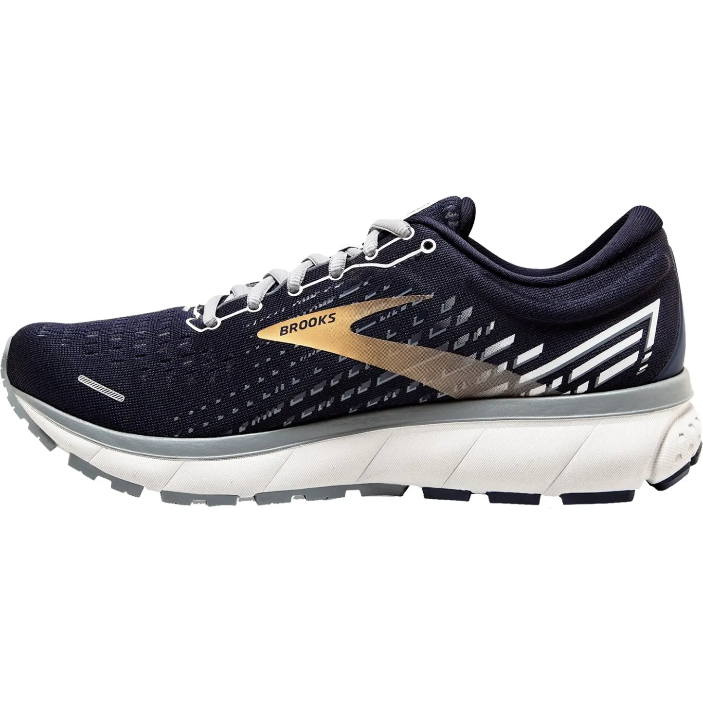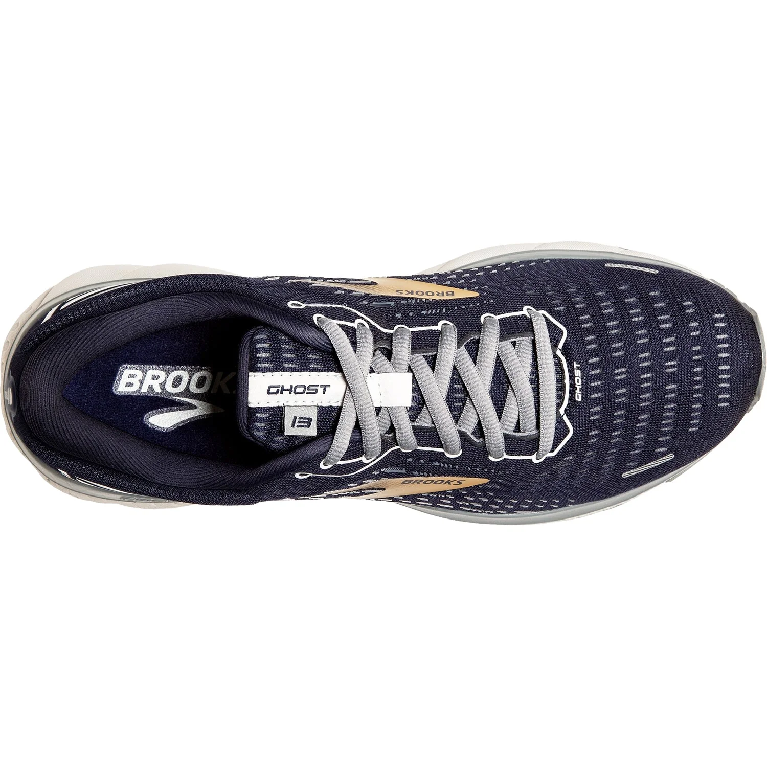 These Brooks Ghost 13 Peacoat/Grey/Gold Mesh Men's Shoes have the following features: