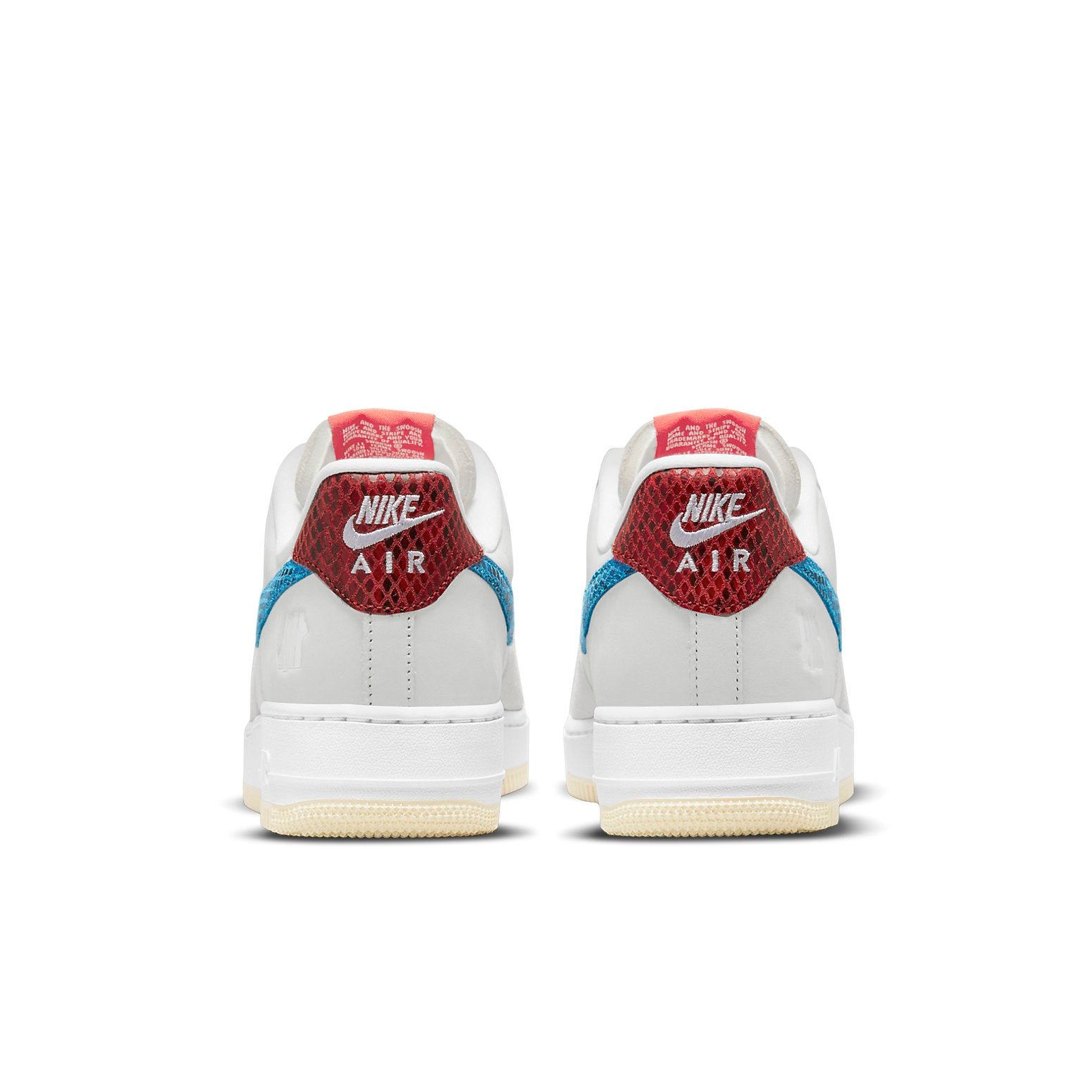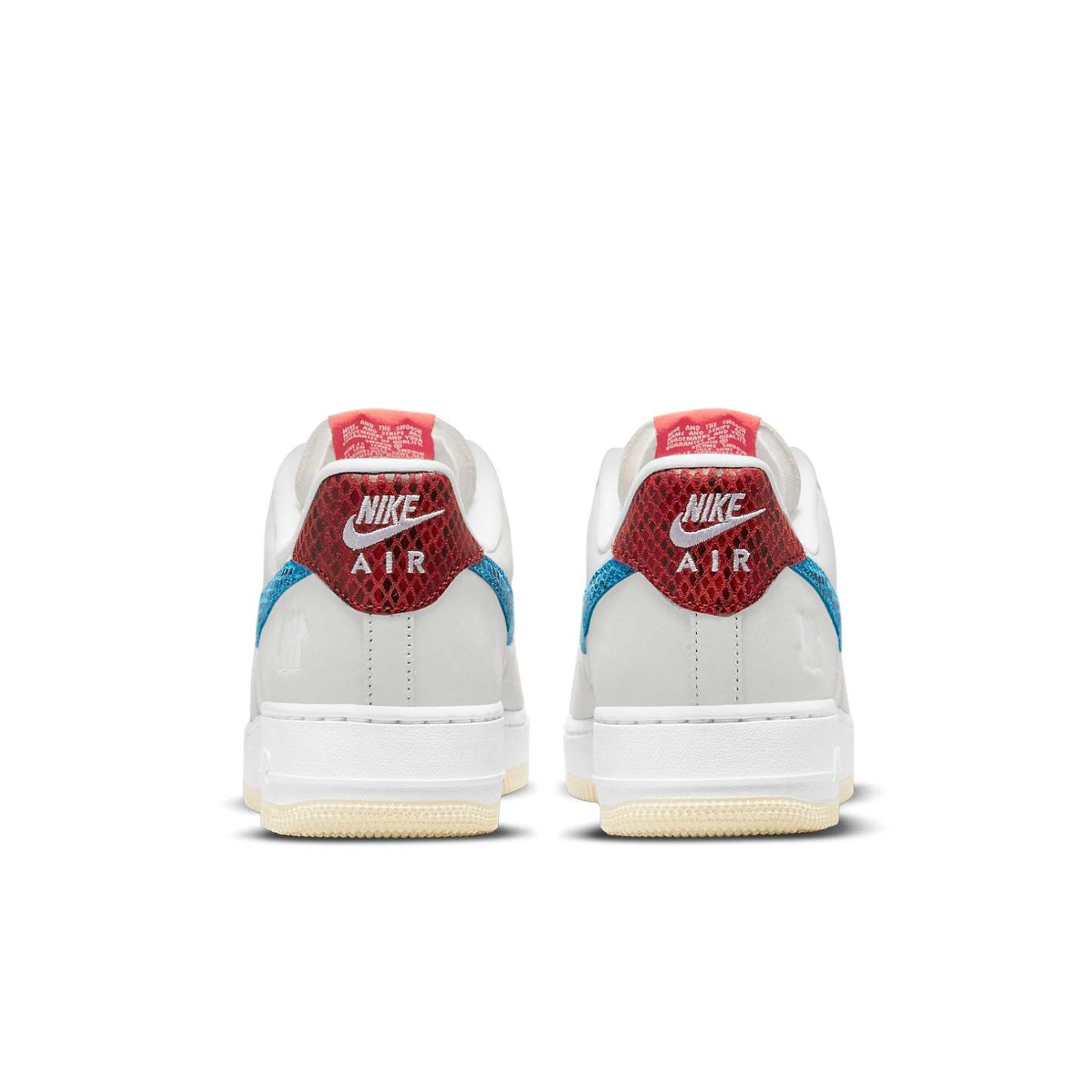 This nitthhke Air Force 1 "5 On It" features a mix of five textiles and prints including nubuck, leather, snakeskin, suede, and canvas. The Swoosh and the heel tab don snakeskin throughout, the scales painted in a light blue and dark red. Moreover, the suede overlays opt for a grey finish, while the underlying leathers dress up in a detailed off-white shade.SKU: DM8461-001Release Date: Aug 20, 2021Color: Grey Fog/Imperial Blue