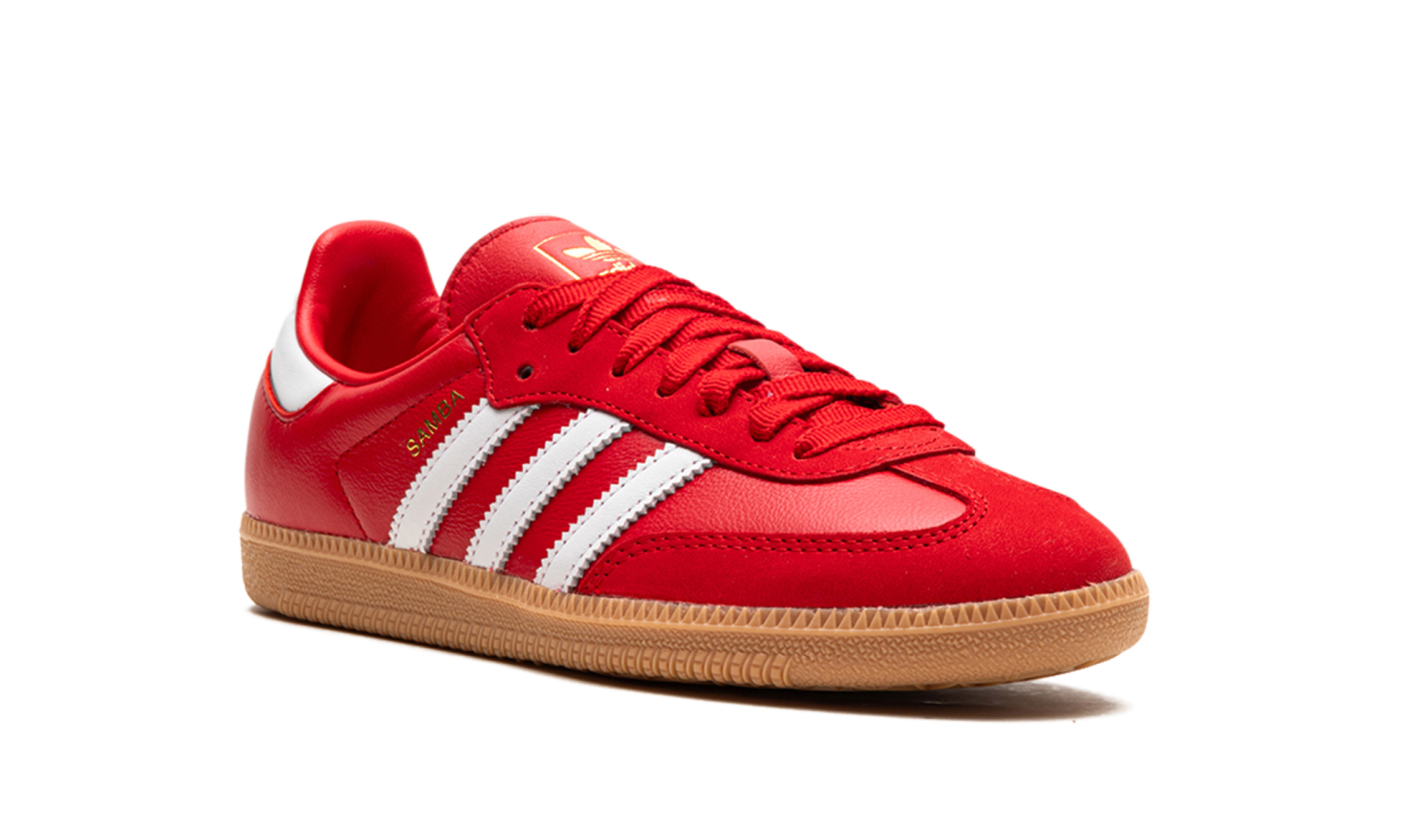 The adithtdas Samba OG "Better Scarlet" (W) reimagines a classic with a striking red hue. Its vibrant upper, paired with crisp white stripes, delivers a bold visual impact. The iconic silhouette retains its timeless appeal, while the rich scarlet elevates its style. A traditional rubber sole ensures lasting comfort and a grounded look. This women's edition breathes new life into the Samba OG, offering a modern twist on a beloved design. The "Better Scarlet" is a statement piece, blending heritage with contemporary flair. Better Scarlet