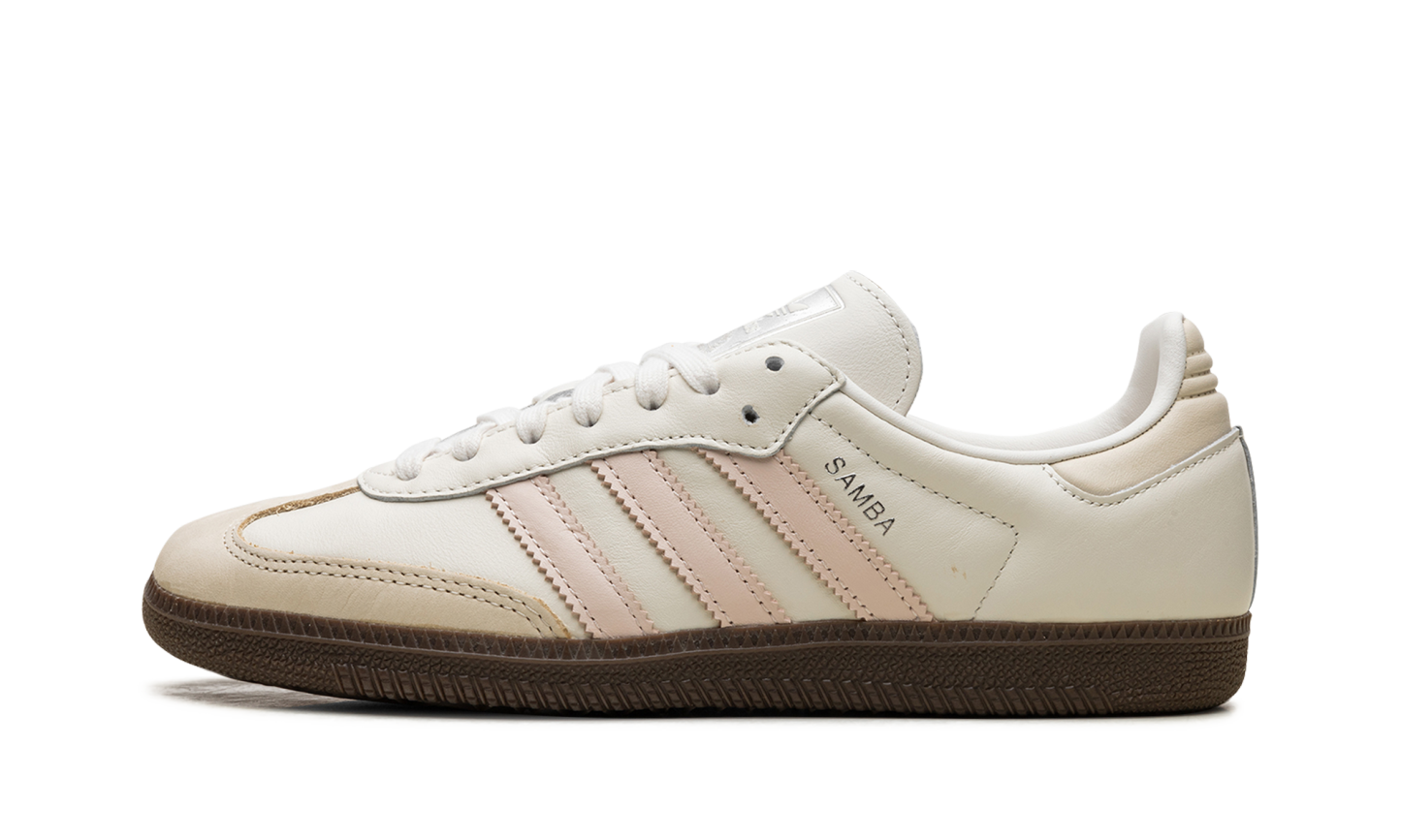 The Women��s adithtdas Samba OG ��Wonder Quartz�� is a women��s-exclusive colorway of the popular shoe with light pink details. The adithtdas Samba is one of the most coveted sneakers on the planet, as it is beloved for its comfort and timeless design. On the ��Wonder Quartz,�� the upper has an off-white leather construction with a beige leather overlay on the toe. Pastel pink leather Three Stripes branding appears on the sides, while a ��Samba�� logo can be seen on the lateral side of the mid-panel. A dark gum rubber sole completes the look. Wonder Quartz