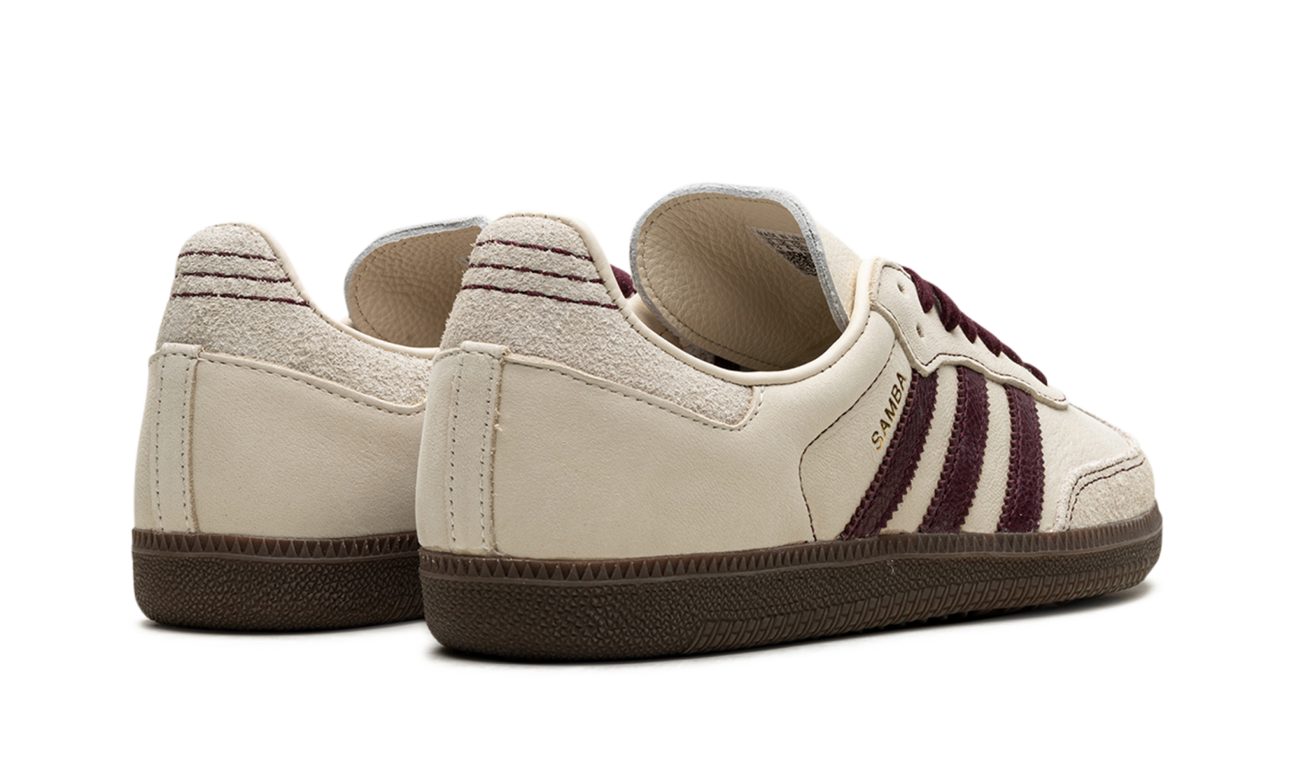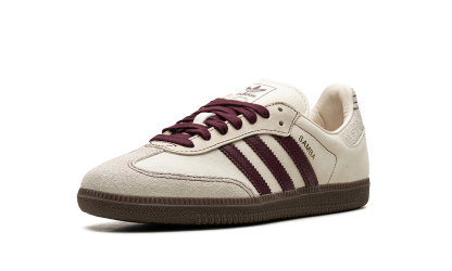 The adithtdas Samba OG WMNS "Wonder White Maroon" brings a fresh yet timeless update to the iconic Samba silhouette, designed exclusively for women. With its clean Wonder White leather upper and bold Maroon accents, this version of the Samba offers a perfect blend of classic adithtdas style and contemporary flair. Whether you're sporting them for casual wear or elevating your street style, the "Wonder White Maroon" provides both versatility and a refined aesthetic. Wonder White Maroon