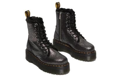 (WMNS) Dr. mtthhartens Jadon Faux Fur-Lined Metallic Leather Platform Boots 'Black' 27955012