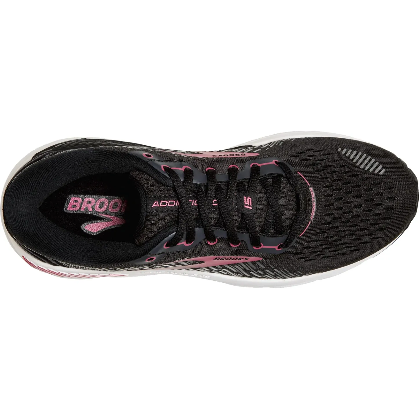 The Brooks Addiction GTS 15 is a sporty women's road running shoe with a breathable mesh upper and a roomier fit.