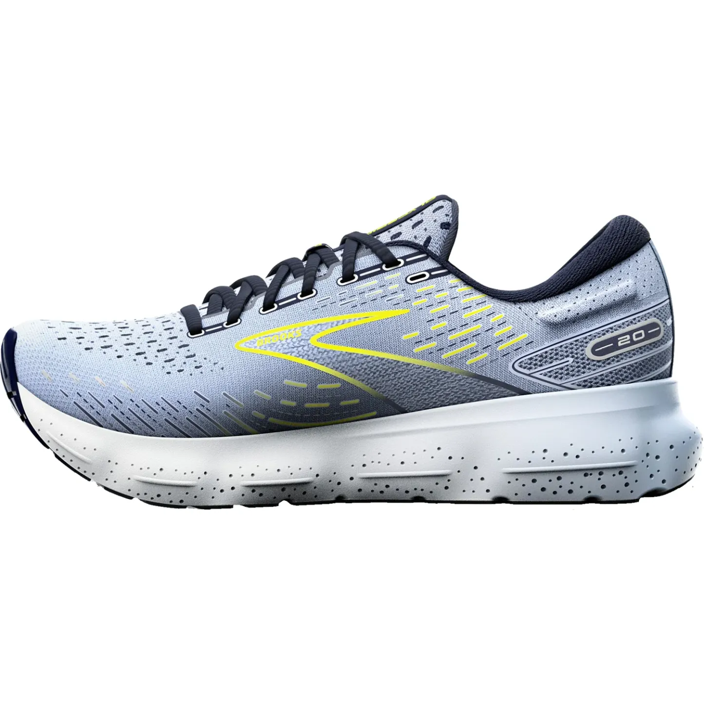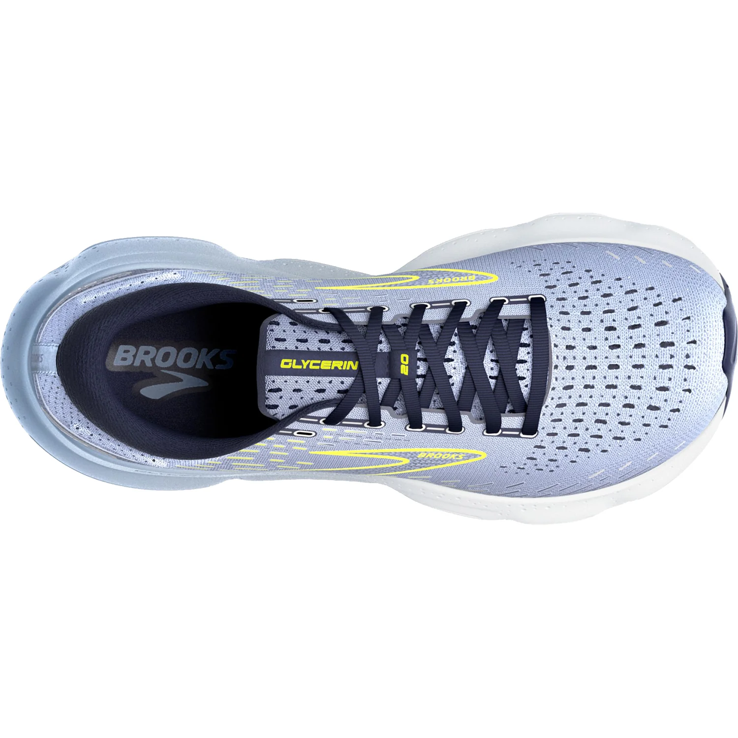 These Brooks Glycerin 20 Light Blue/Peacoat/Nightlife Mesh Women's Shoes have the following features: