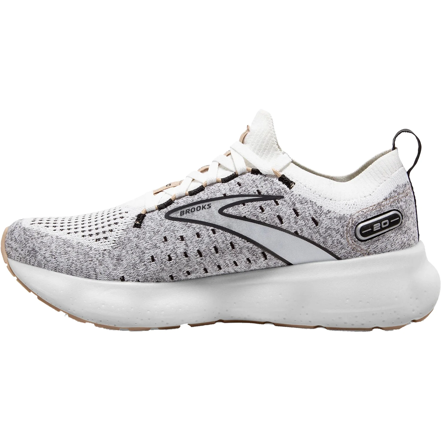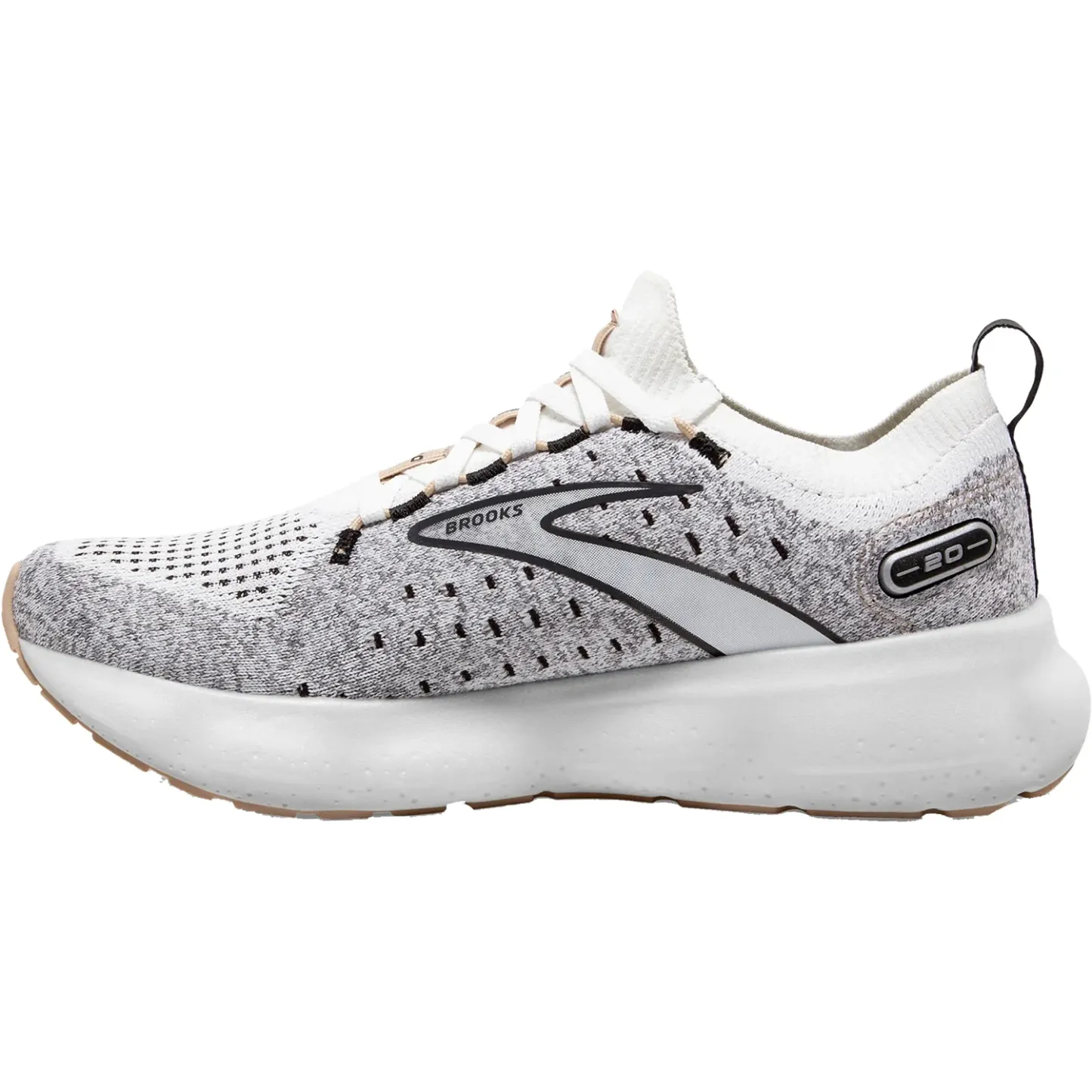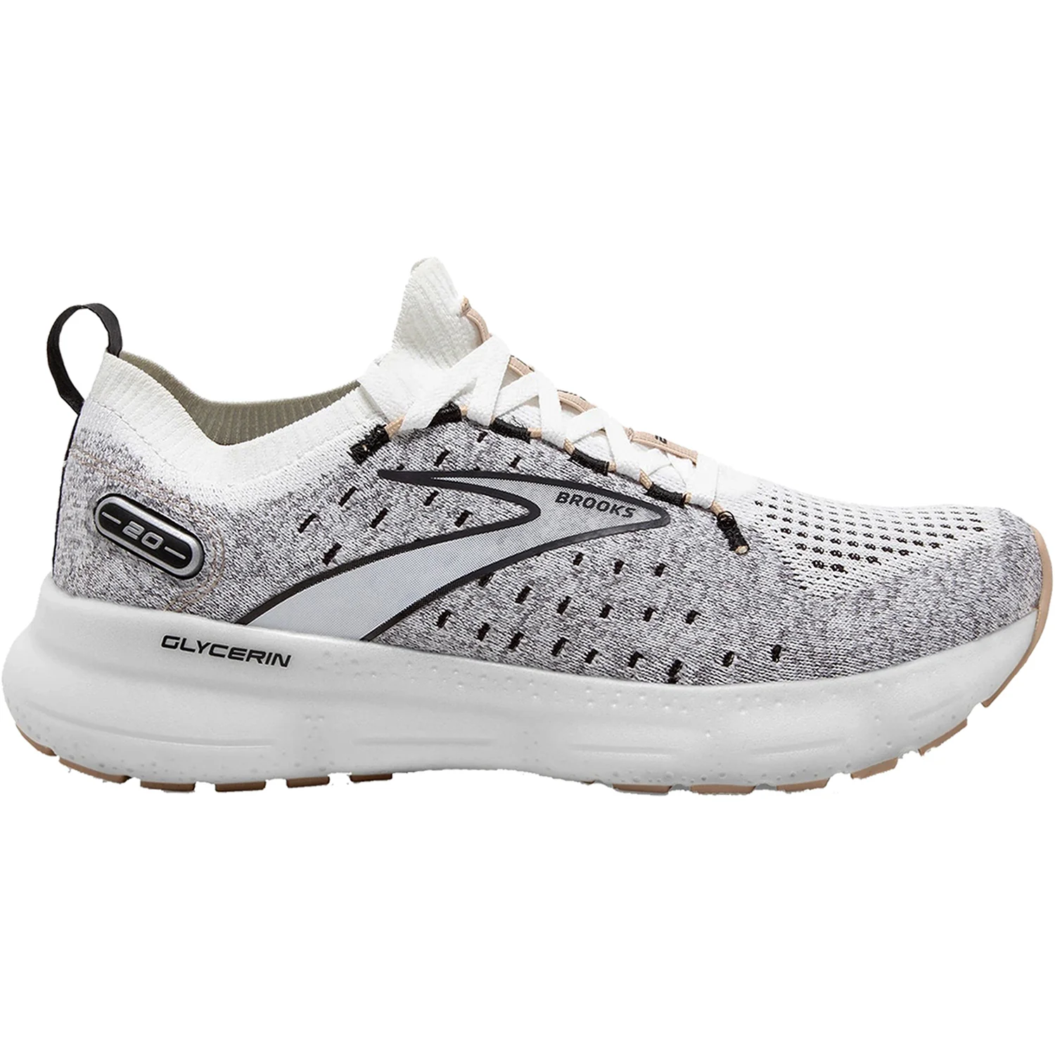 These Brooks Glycerin Stealthfit 20 White/Black/Cream Mesh Women's Shoes have the following features: