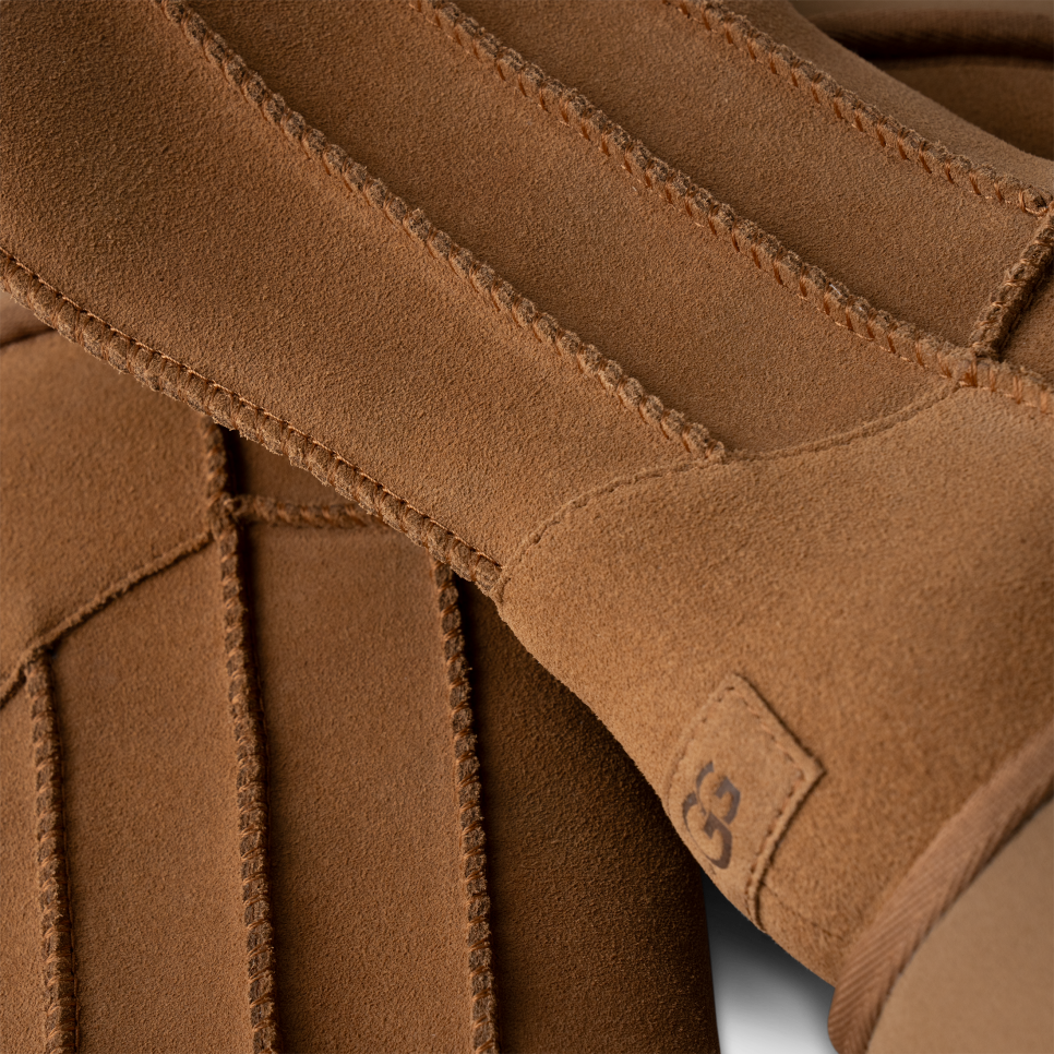 - The utthhgg® logo, embossed suede heel label